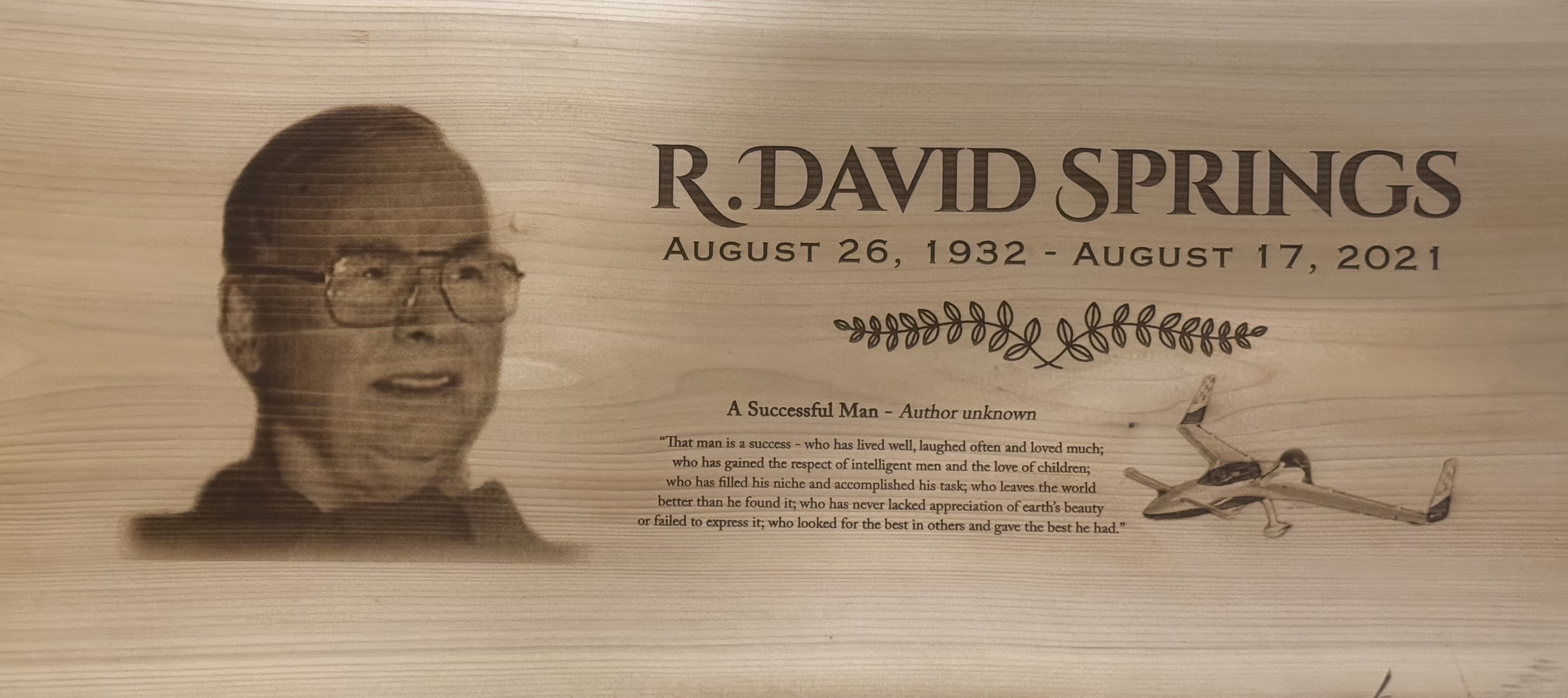 Born on August 26, 1932, and called home to his eternal reward on August 22, 2021, R. David Springs lived a life marked by intellect, adventure, and unwavering faith. As a dedicated chemical engineer and passionate private pilot, he embodied the spirit of innovation and exploration. Yet, above all, he was a man of deep conviction, whose every endeavor was rooted in his devotion to Jesus Christ. It is my ultimate honor to be his son, and through this page, I dedicate his memory while proclaiming the faith that guided us both.